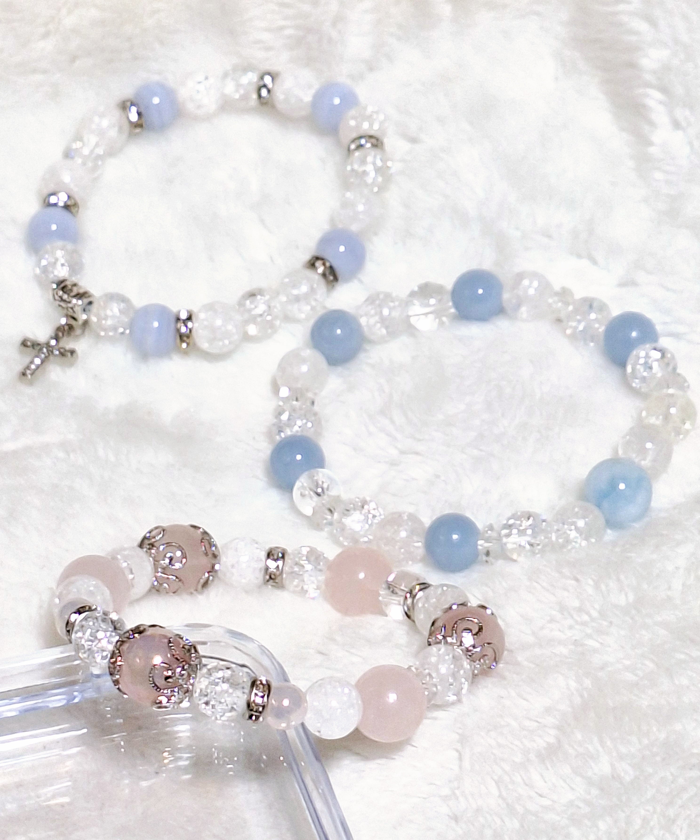 アクアマリン エンジェライト クラック水晶 天然石ブレスレット